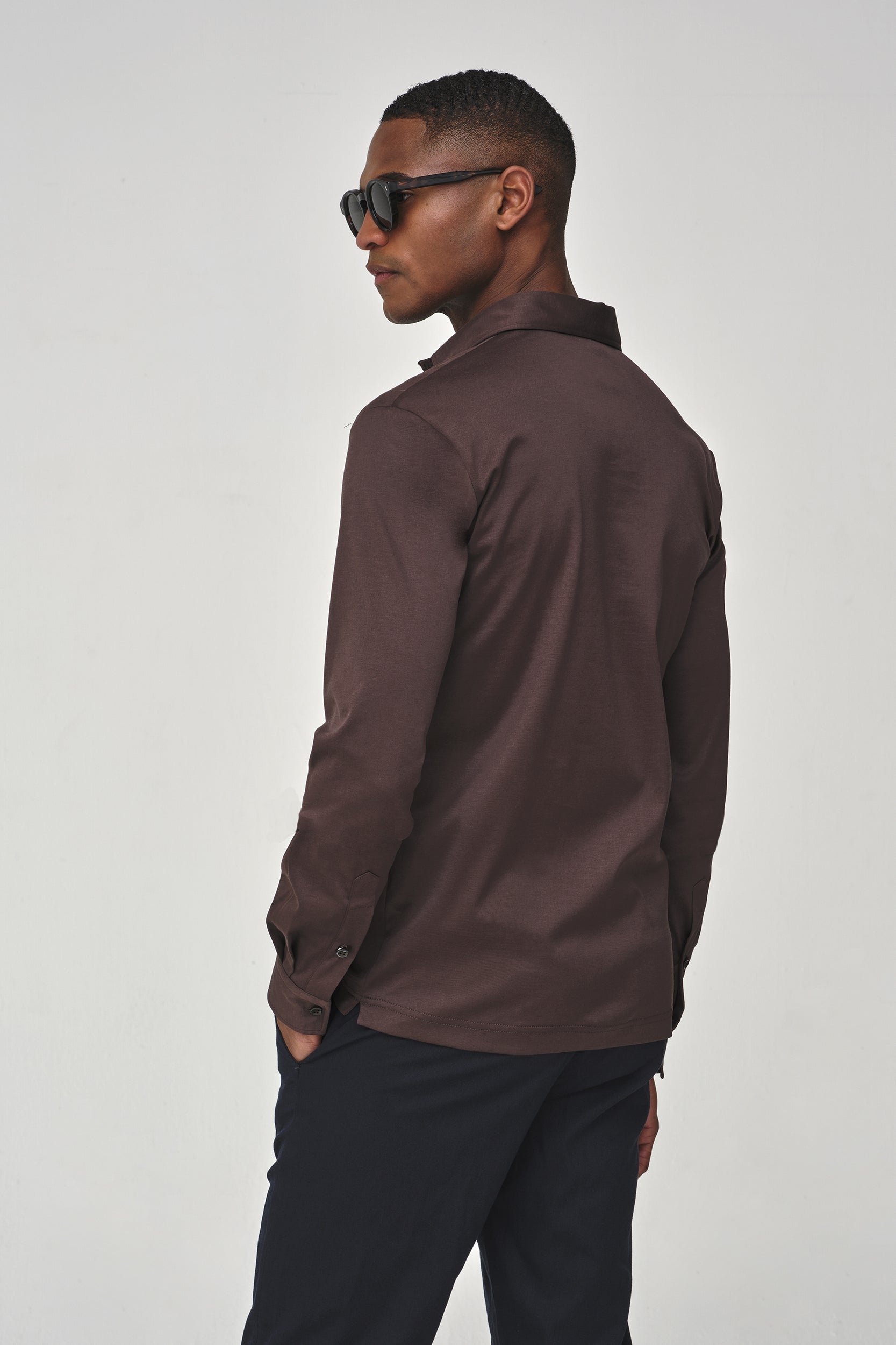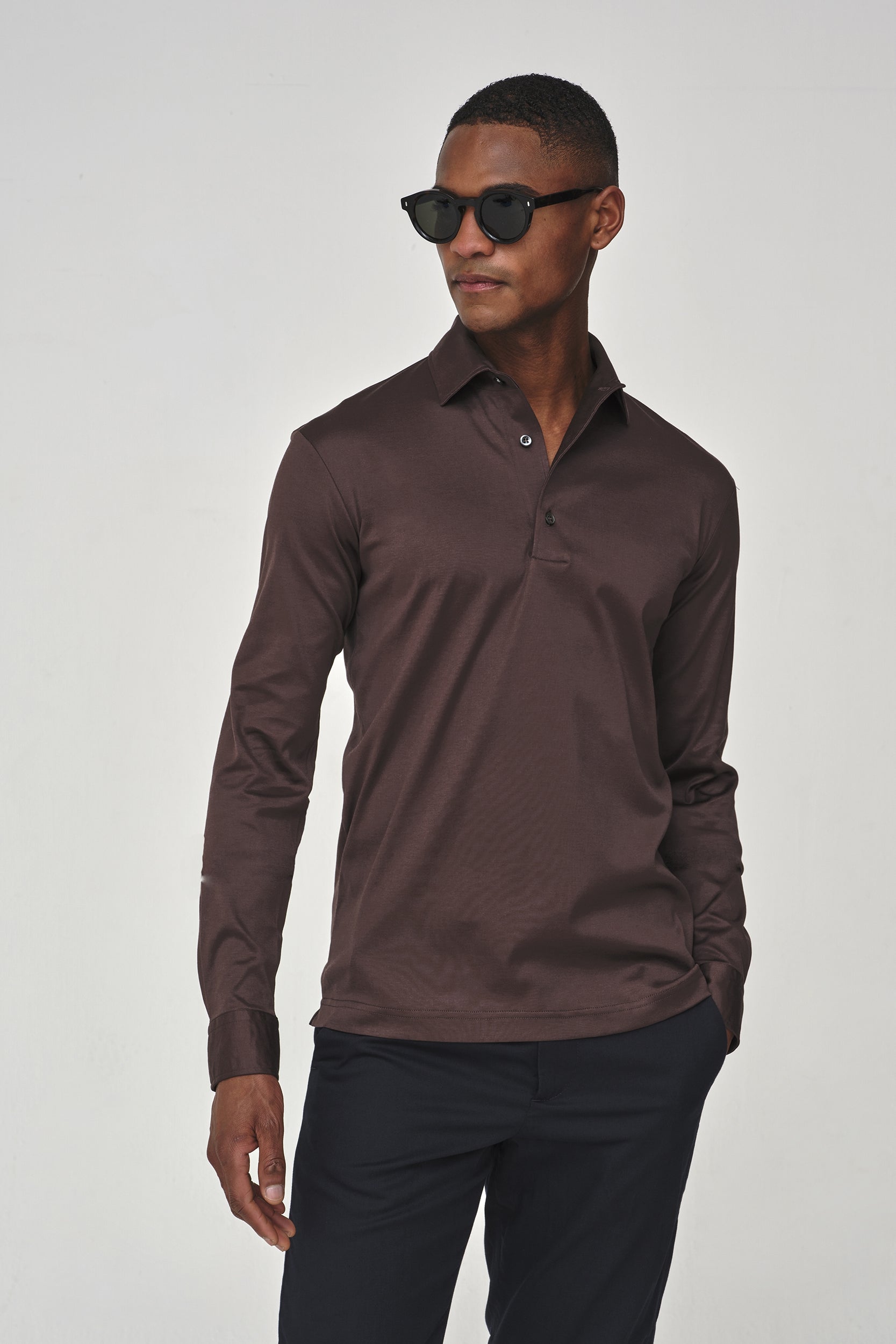 Supima Polo Schiller Collar L/S | Ebony Brown
